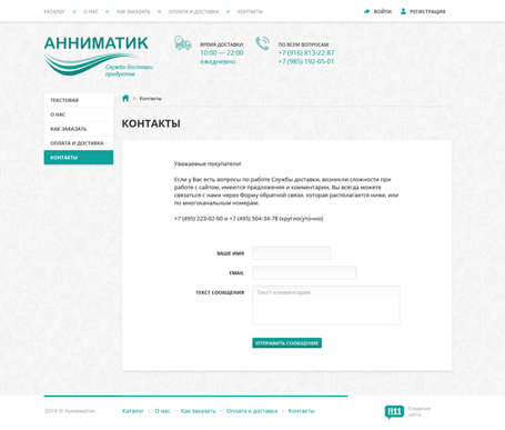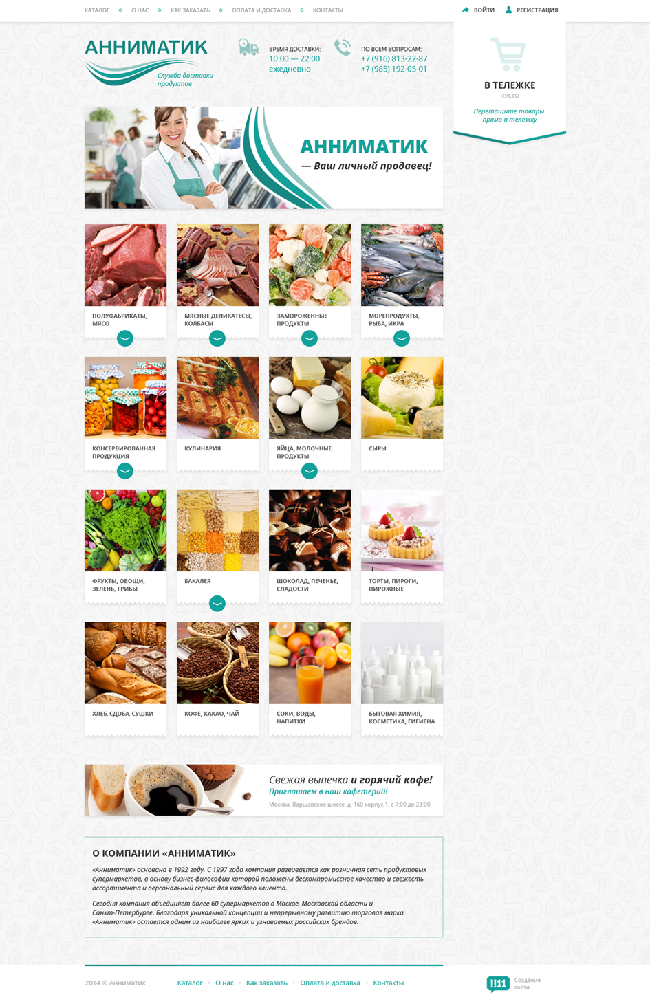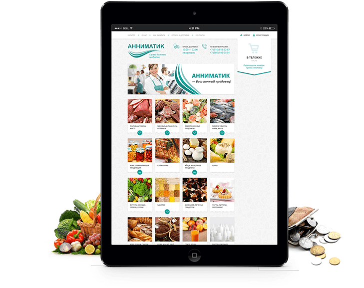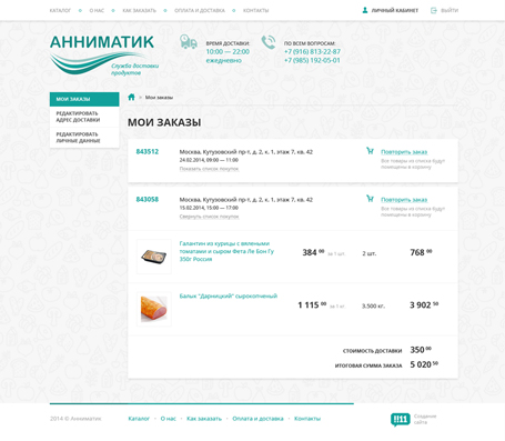 Они обратились к нам с целью разработать интернет-магазин, с помощью которого они смогли бы доставлять продукты на дом. Задача оказалась не совсем тривиальной. Аудитория пользователей - 2 небольших района Москвы (на момент создания сайта), которые имеют ближайшее расположение к этим торговым точкам. Еще один критерий пользователей - люди, редко делающие покупки через Интернет и плохо обученные работе с ПК.