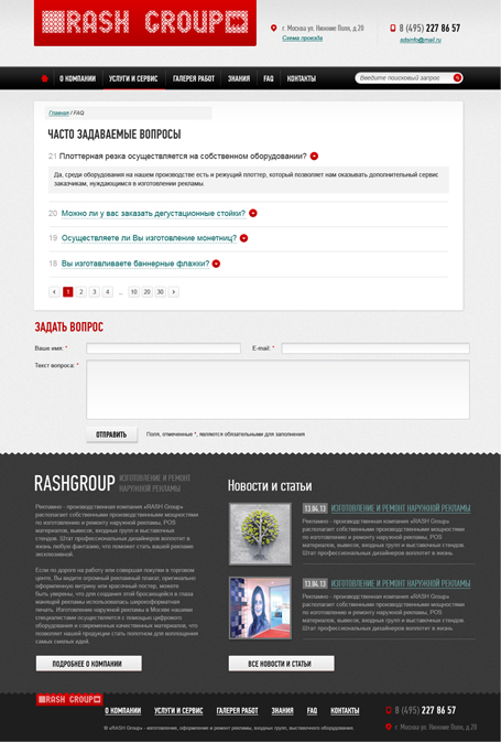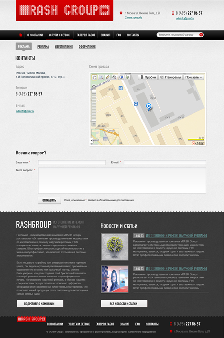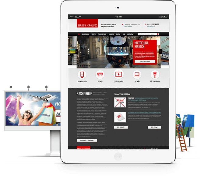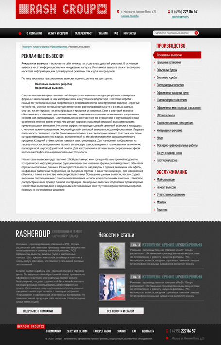 Рекламное агентство RashGroup занимается изготовлением и ремонтом наружной рекламы. Компания имеет собственную производственную базу, позволяющую выпускать широкий ассортимент продукции. Среди клиентов агентства такие крупные заказчики как Сбербанк, Промсвязь банк, Toyota.