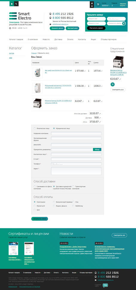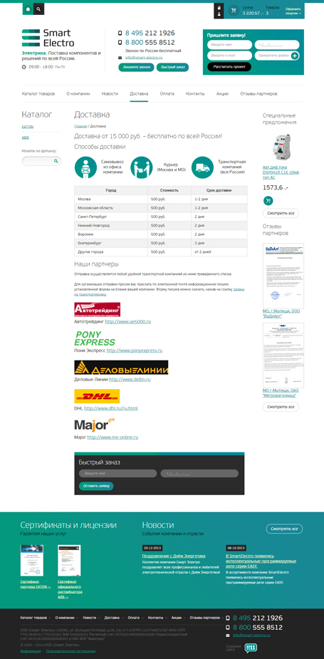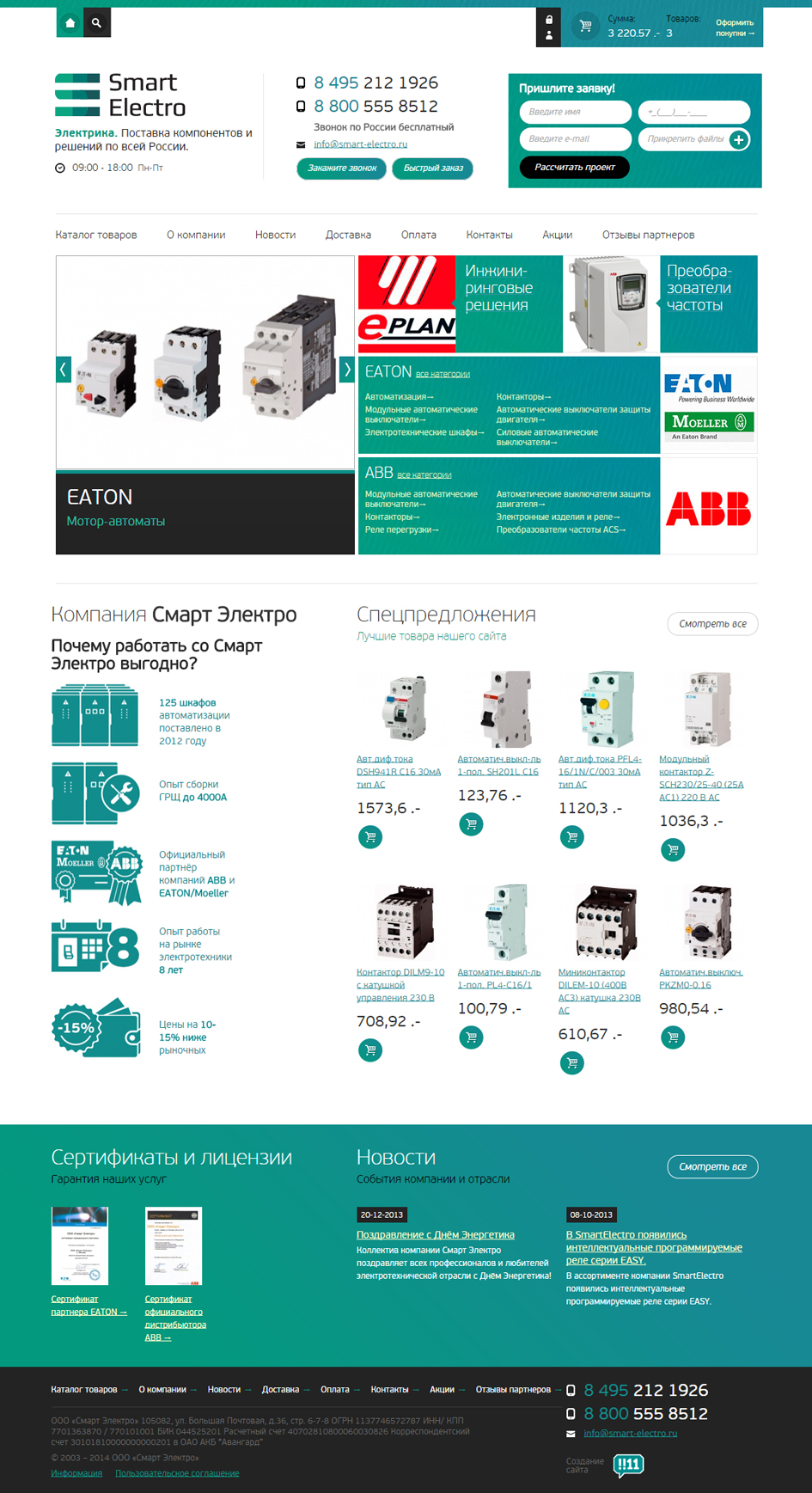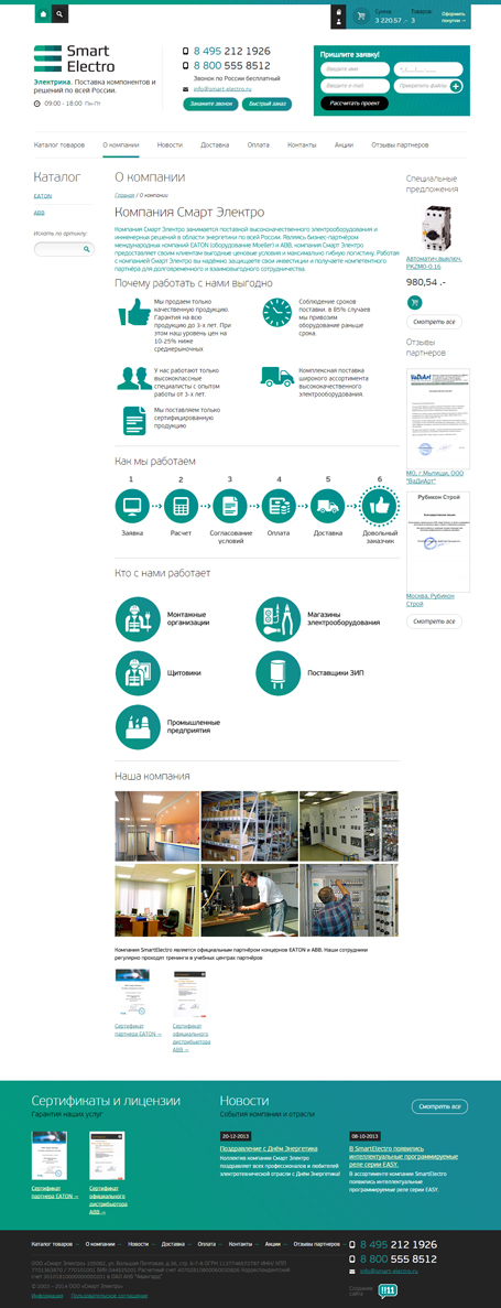 Компания Смарт Электро занимается поставкой высококачественного электрооборудования и инженерных решений в области энергетики по всей России. Является бизнес-партнёром международных компаний EATON (оборудование Moeller) и ABB.